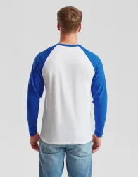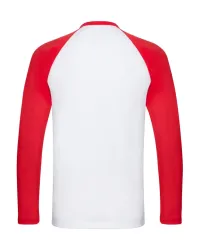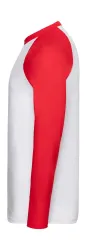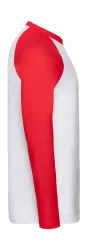 ·160 g/m²·100% pamut·keskeny, kontrasztos színű, 1x1 bordás kötésű nyakkivágás lycrával·kontrasztos színű, hosszú raglán ujjak·duplán tűzött nyakkivágás·ujjvégek és derékrész·körkötött anyag.