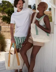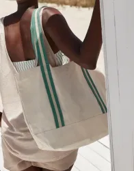 ·340 g/m²·100% pamut (organikus)·vastag vászon anyag·csíkos pamut fogantyúk·Kapacitás: 19 liter·Méret: 36 x 36 x 16 cm.