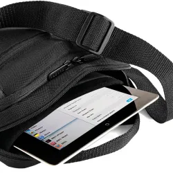 ·100% poliészter (600D/1680D)·Pad™-hez készült·több zsebbel·könnyen hozzáférhető első hajtóka logózáshoz·állítható vállpánt·Térfogat: 4,5 l.·Méret: 23 x 29 x 8 cm