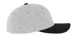 ·435 g/m²·66% poliészter, 30% pamut, 4% elasztán·sapka teteje melanzs hatású·6 panel·sild 8 db dísztűzéssel·sild alja színben egyező·előformázott sild.