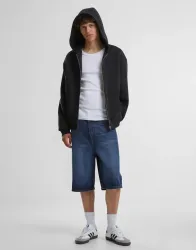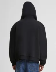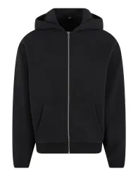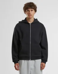 ·330 g/m²·70% pamut, 30% poliészter·Túlméretezett fazon·Kapucnis·Fém cipzár·Ejtett vállak·Kenguruzseb·Bordázott mandzsetta az ujjon és az alsó szegélyen