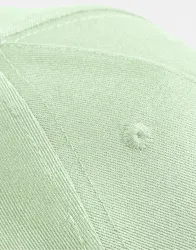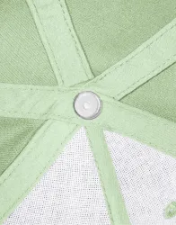 ·100% pamut (organikus twill)·5 panel·hímzett szellőzők·struktúrált első panelek·előformázott sild·műanyag méretállítás·letéphető címke az újra emblémázás megkönnyítése érdekében.