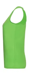 ·140 g/m²·100% poliészter·elvezeti a nedvességet és gyorsan szárad·saját anyagával szegélyezett nyak- és karkivágás·nyomott nyaki címke·békahátú·oldalvarrás·nőies fazon.