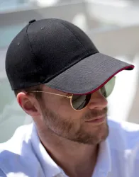 ·280 g/m²·100% pamut·6 paneles·alacsony profil·teljes első profil·hímzett szellőzők·6 db dísztűzés az előformázott silden·tépőzáras méretállítás·letéphető címke.