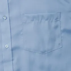 ·120 g/m²·100% pamut mikro twill·egyáltalán nem vasalható·legombolt gallér·a vállán toldással, oldalán visszahajtva·színben megegyező gombok·rávarrott mellzseb·kerekített alj.
