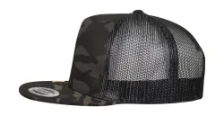 ·98% pamut, 2% elasztán·Hálós panelek: 100% poliészter·terepszínű mintával·klasszikus fazon·5 panel·lapos sild 8 db dísztűzéssel·sild alja fekete színű·műanyag méretállítás.