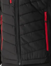 ·60 g/m²·100% poliészter 210T (újrahasznosított)·Taft bélés·Termikus, rugalmas hibrid kialakítás·Két cipzáras alsó zseb, egy cipzáras mellkasi zseb·Újrahasznosított anyagokból készült