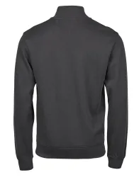 ·365 g/m²·80% gyűrűsfonású pamut, 20% poliészter (bordás Interlock)·álló gallér·1/4-es SBS cipzár·halszálkás mintázatú nyakmegerősítő·bordás kötés elasztánnal·duplán tűzött ujjvégek és derékrész.