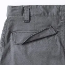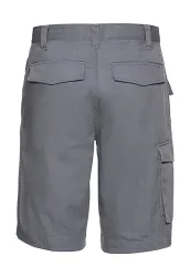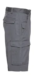 ·245 g/m²·65% poliészter, 35% pamut twill·gumis derekú rövid nadrág a fokozott komfortérzetért·divatos kialakítás·két farzseb hajtókával·mobiltartó zseb·jobb nadrágszáron szerszámtartó zseb.