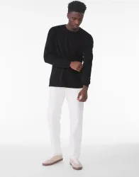 ·145 g/m²·100% fésült, gyűrűsfonású pamut·Dark Grey Heather: 52% pamut, 48% poliészter·előzsugorított·rib kötéses nyakkivágás és ujjvégek·oldalvarrás·letéphető címke·unisex fazon·divatos fazon.