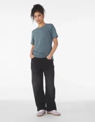 ·142 g/m²·100% fésült, gyűrűsfonású pamut·válltól vállig megerősítve·szűkített karrész·oldalvarrás·testhezálló fazon.