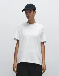 ·180 g/m²·100% organikus pamut·H&M csoport által tervezve·duplán tűzött szegély·szegett nyakkivágás·láncöltéses vállvarrás·nyakmegerősítés·1X1 rib kötés·vastag tapintású·enyhén ejtett vállú.